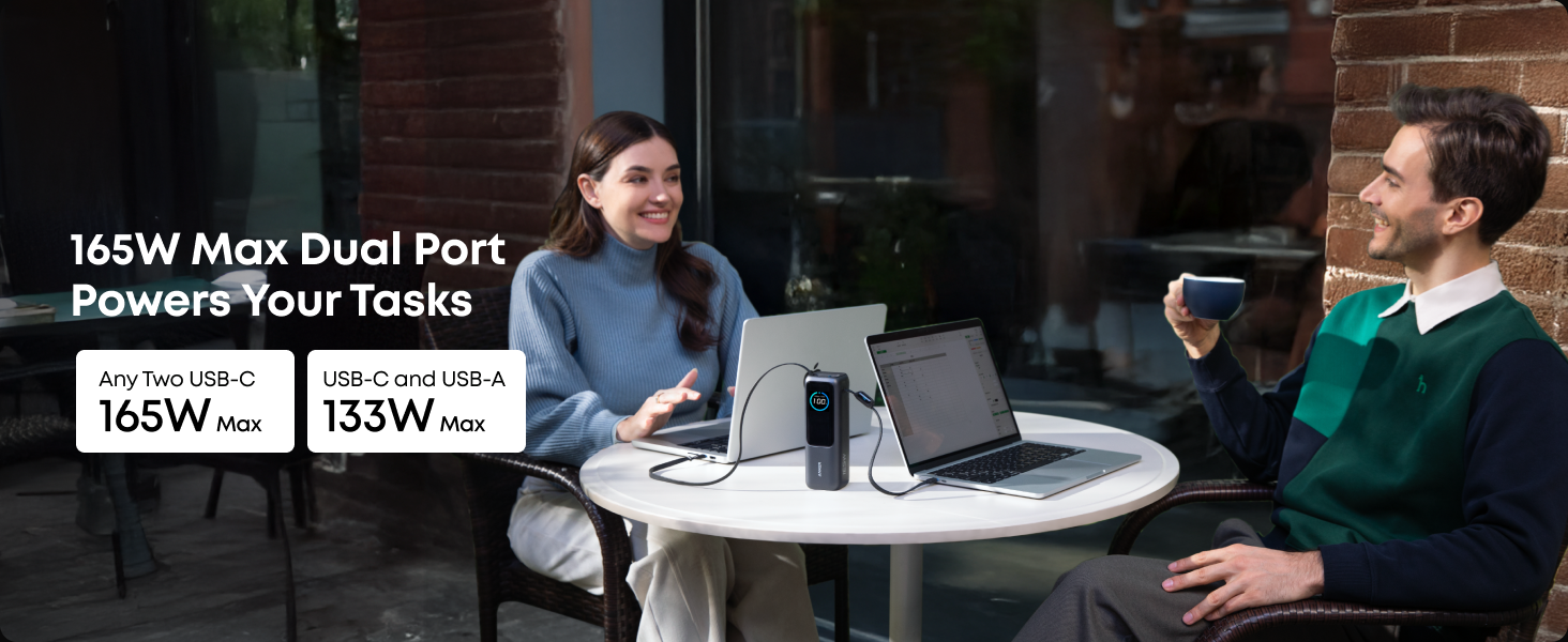 - 25,000 mAh para energía de larga distancia: Empiece en viajes prolongados con una enorme capacidad de 25,000 mAh que admite sus dispositivos a través de múltiples usos, completa con una recarga ultrarrápida de 100 W que alimenta el banco de energía al 30% en solo 22 minutos. (Nota: este banco de energía de 90Wh cumple con las regulaciones de equipaje de mano de la aerolínea para baterías de menos de 100 Wh y debe colocarse en el equipaje de mano)
