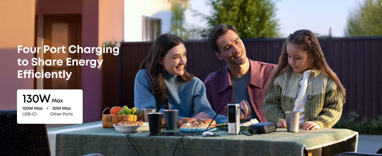 - Cargue 4 dispositivos a la vez: nunca se quede sin energía, ya sea que esté cargando teléfonos inteligentes, tabletas u otros dispositivos habilitados para USB. Conecte hasta cuatro a la vez gracias a los cables USB-C duales, un puerto USB-A y un puerto USB-C.