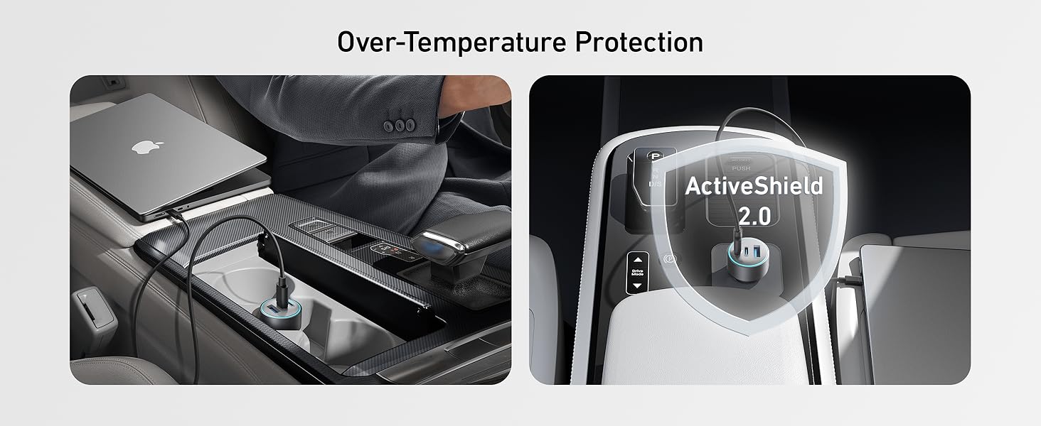 - Sistema de seguridad ActiveShield 2.0: proporciona monitoreo continuo de temperatura y control de salida para proteger su dispositivo conectado, para que pueda descansar tranquilo mientras conduce.