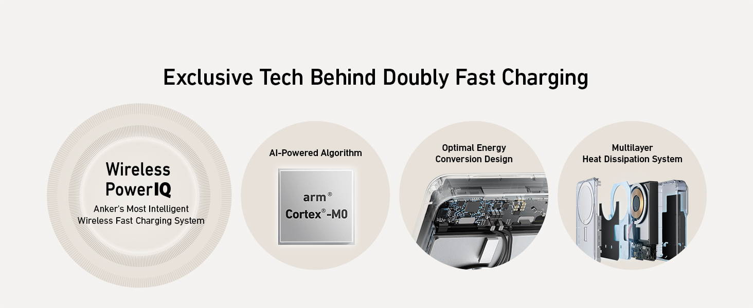 - Carga Qi2 rápida y eficiente: experimente el futuro de la carga con nuestro cargador inalámbrico de 15 W, certificado Qi2 para una carga rápida, segura y eficiente. Con evidencia de rendimiento de vanguardia, obtenga su serie iPhone 15 del 0 al 50% en solo 44 minutos.