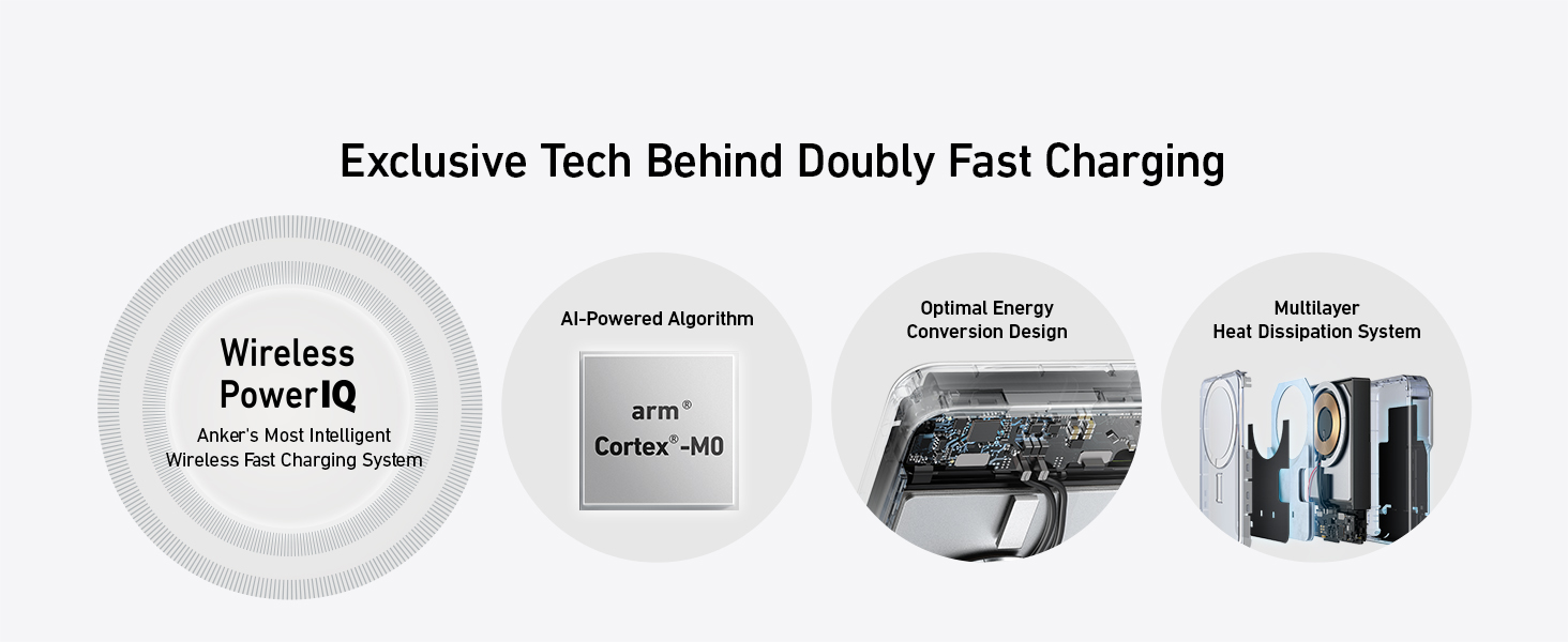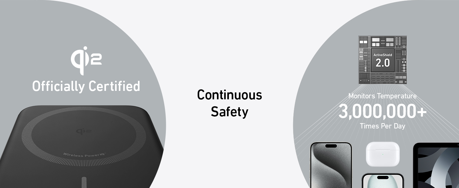 - Carga Qi2 rápida y eficiente: experimente el futuro de la carga con nuestro cargador inalámbrico de 15 W, certificado Qi2 para una carga rápida, segura y eficiente. Con evidencia de rendimiento de vanguardia, obtenga su serie iPhone 15 del 0 al 50% en solo 44 minutos.