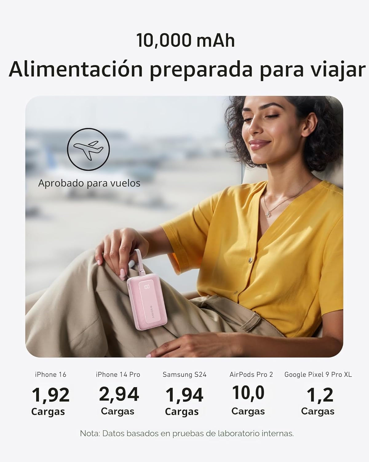 • Durabilidad bajo demanda: cuenta con un cable USB-C integrado de 5.98 pulgadas que no solo es conveniente sino también extremadamente duradero, diseñado para soportar más de 10,000 curvas. Este banco de energía compacto mide 4.72 × 2.89 × 1.23 pulgadas y pesa solo 12.45 onzas.