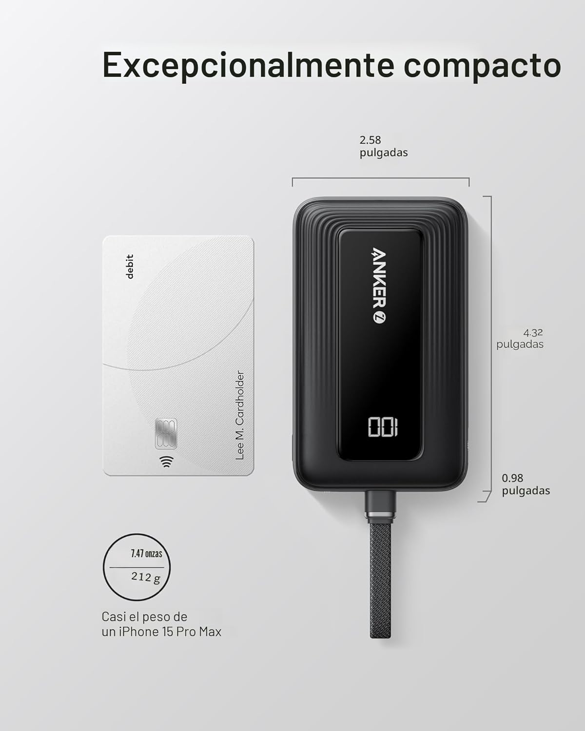 • Lo que obtienes: banco de energía Anker Zolo (20K, 30 W) con un cable USB-C integrado de 5.98 pulgadas (6.0 in) (idioma español no garantizado).