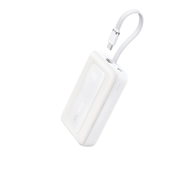 Anker Power Bank (20K, 30W, Built-In USB-C Cable) Blanco