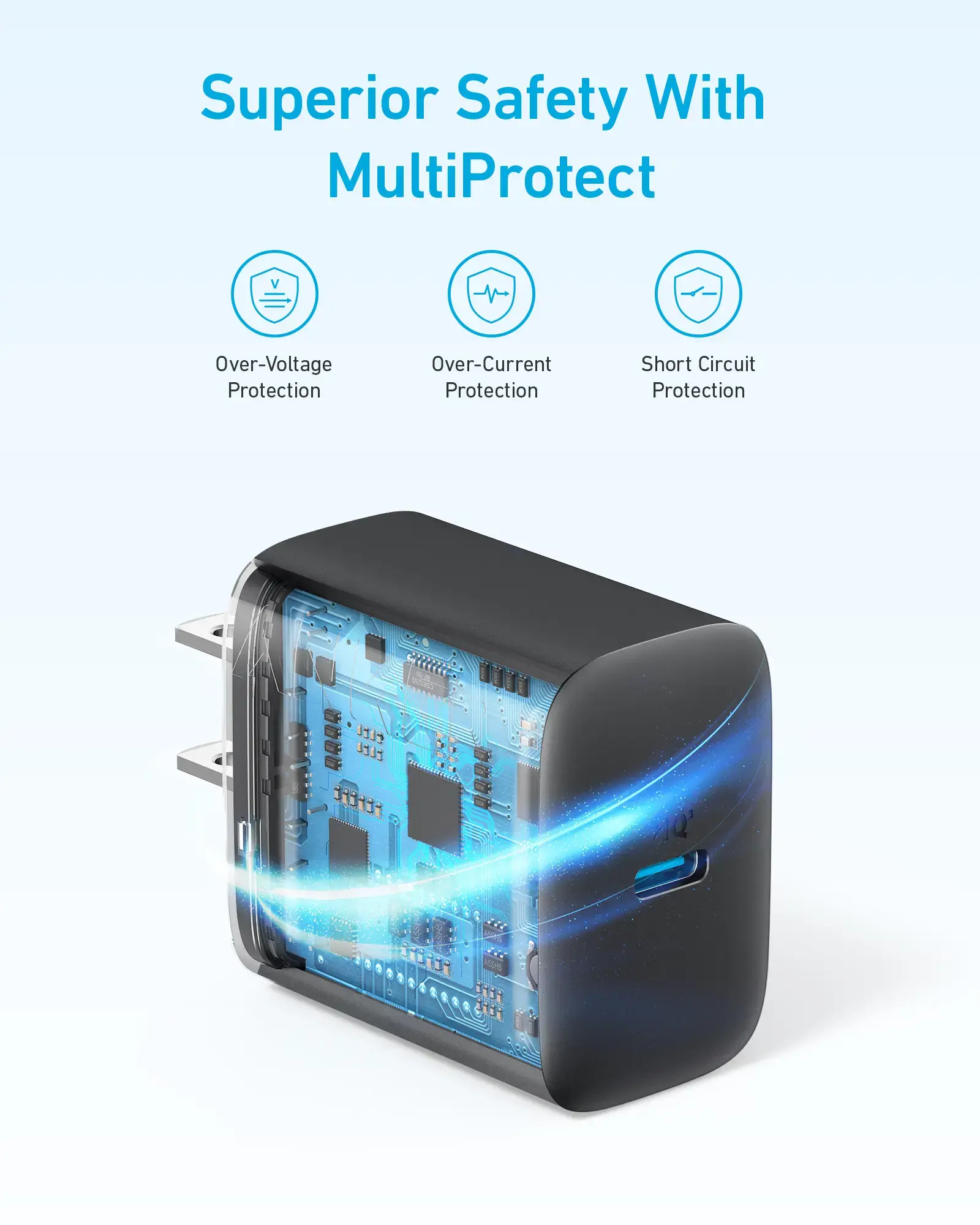 El sistema de seguridad MultiProtect™ protege tus dispositivos contra posibles riesgos, ofreciéndote una experiencia de carga confiable y sin preocupaciones.