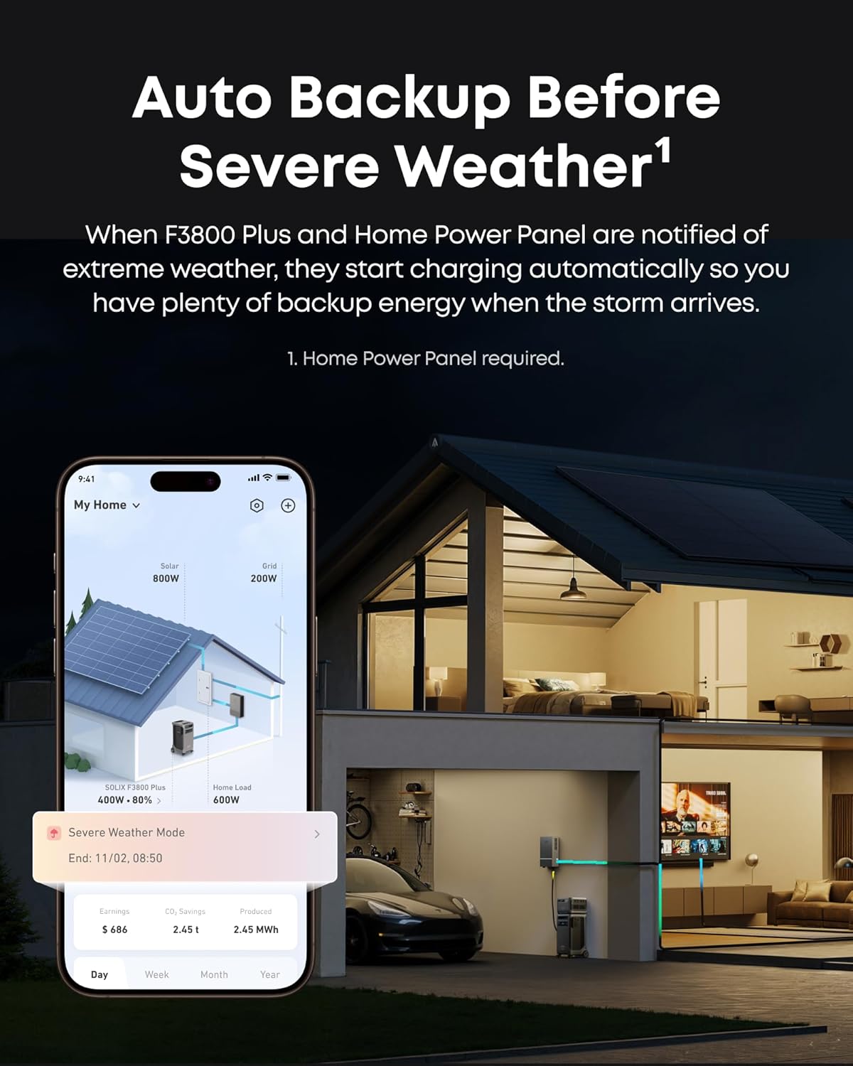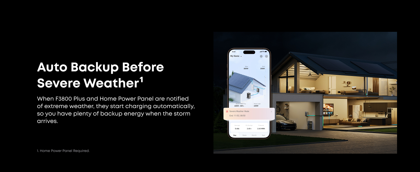 • Capacidad ampliada de 3.84kWh: F3800 Plus comienza con 3.84kWh, suficiente energía para su familia por un día. Si eso no es suficiente, agregue hasta 6 baterías para 26.9kWh. O agregue 12 baterías y otro F3800 durante semanas de energía.