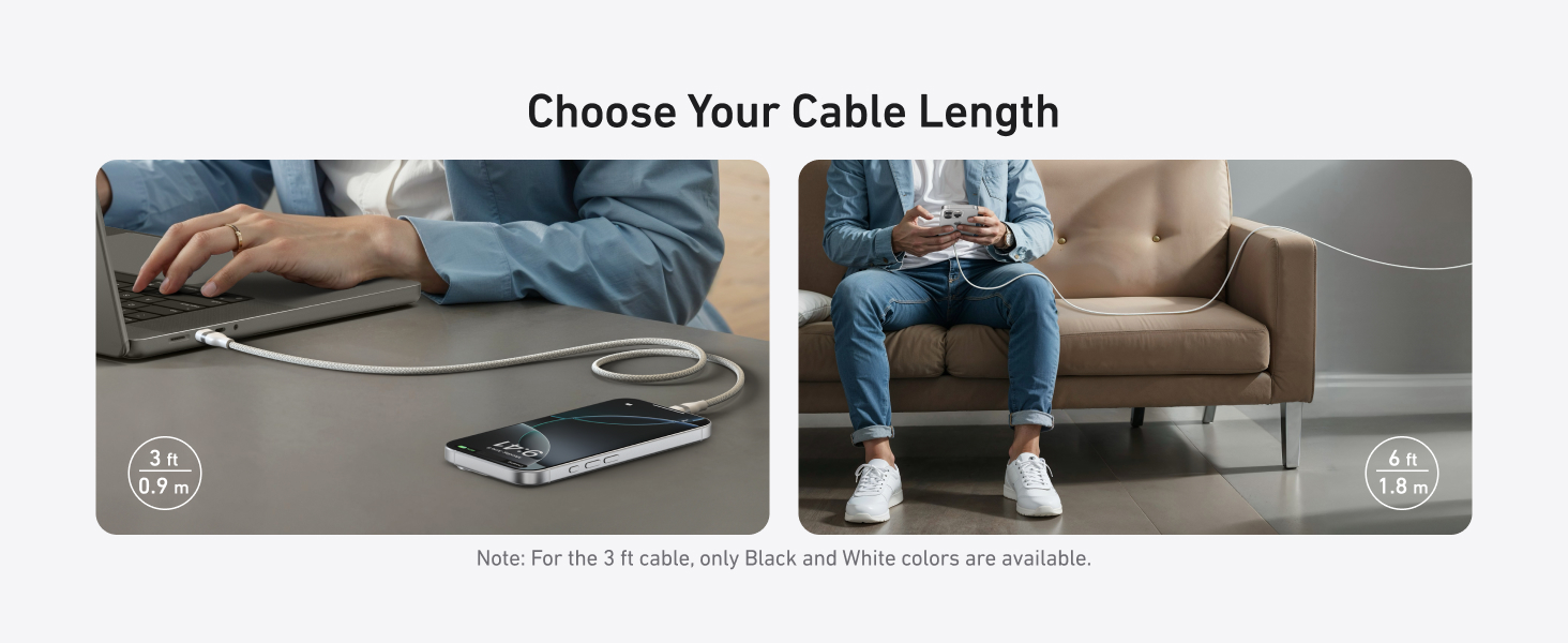 • Cable superrápido de 240 W: este cable certificado USB-IF de 240 W puede cargar tu MacBook Pro (M3 Pro) de 16 pulgadas al 50% en solo 26 minutos o tu iPhone 16 Pro Max al 50% en 29 minutos. (Nota: Este cable no es compatible con la duplicación de pantalla)