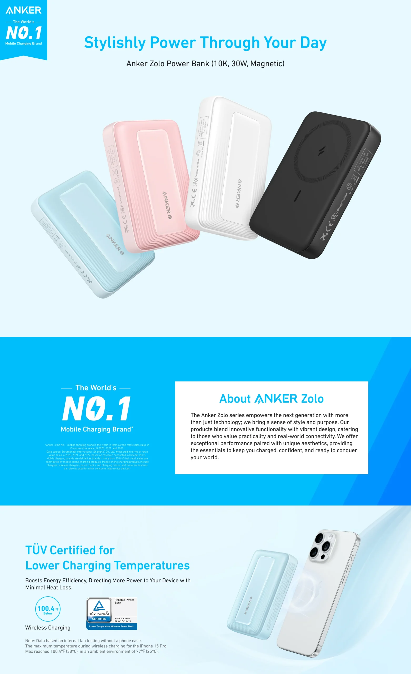 El avanzado sistema de control térmico mantiene la temperatura por debajo de 38 °C durante la carga inalámbrica, garantizando seguridad y eficiencia.