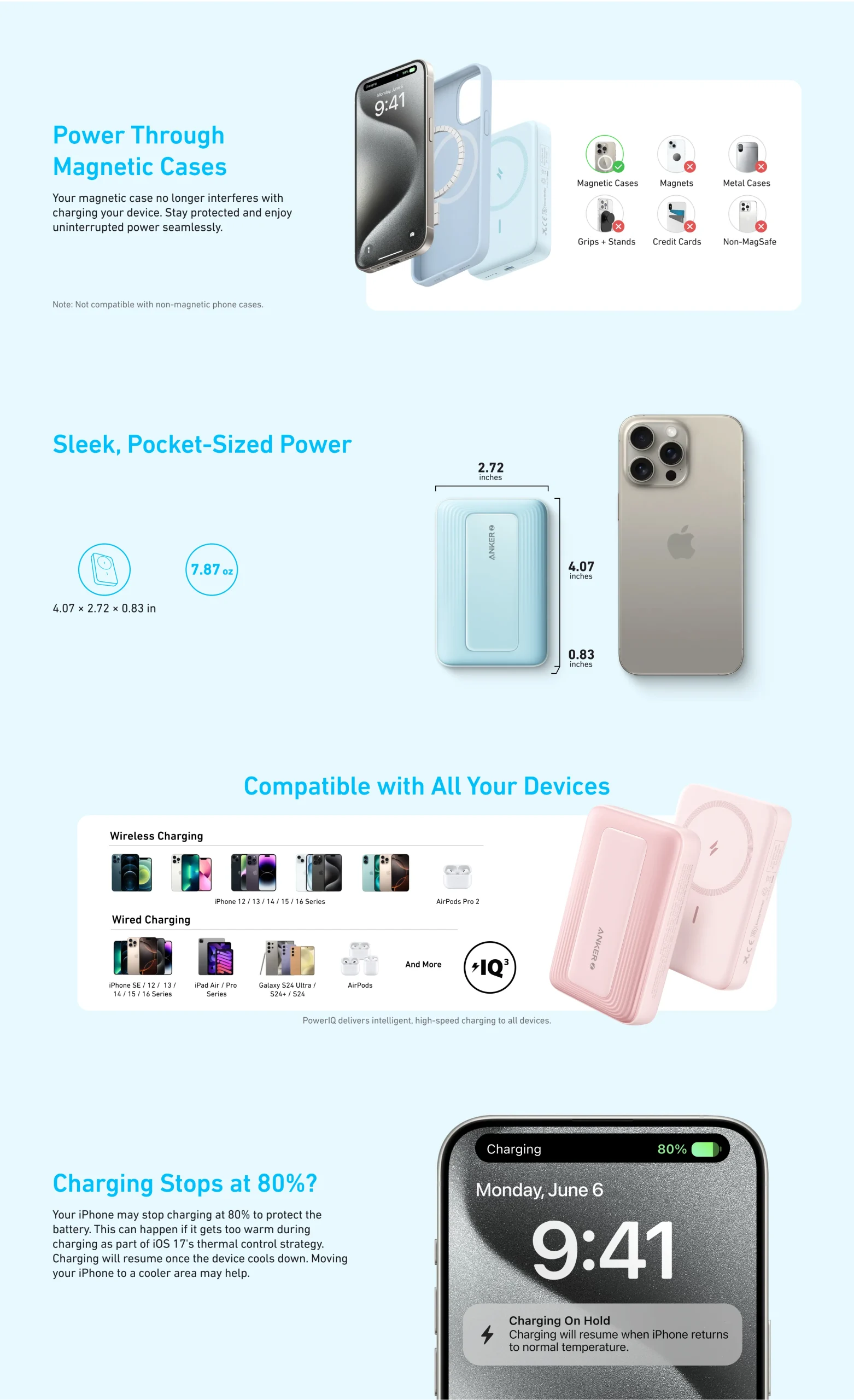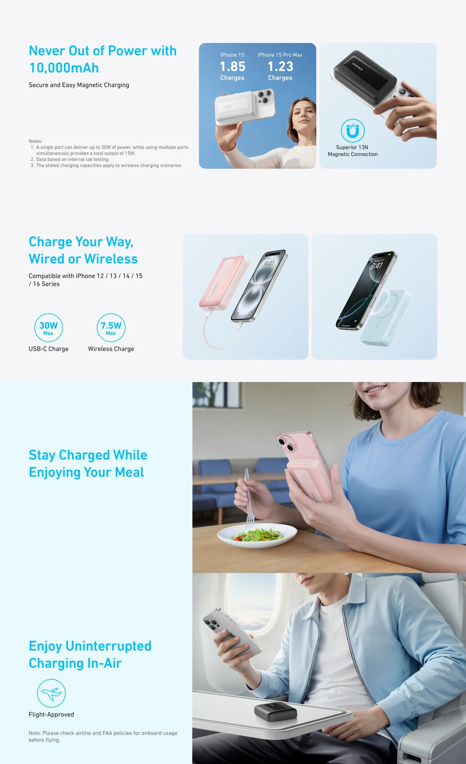Con una capacidad de 10,000 mAh, obtén hasta 2 cargas completas para un iPhone 15 o 1.5 cargas para un iPhone 15 Pro Max. Mantente conectado todo el día.