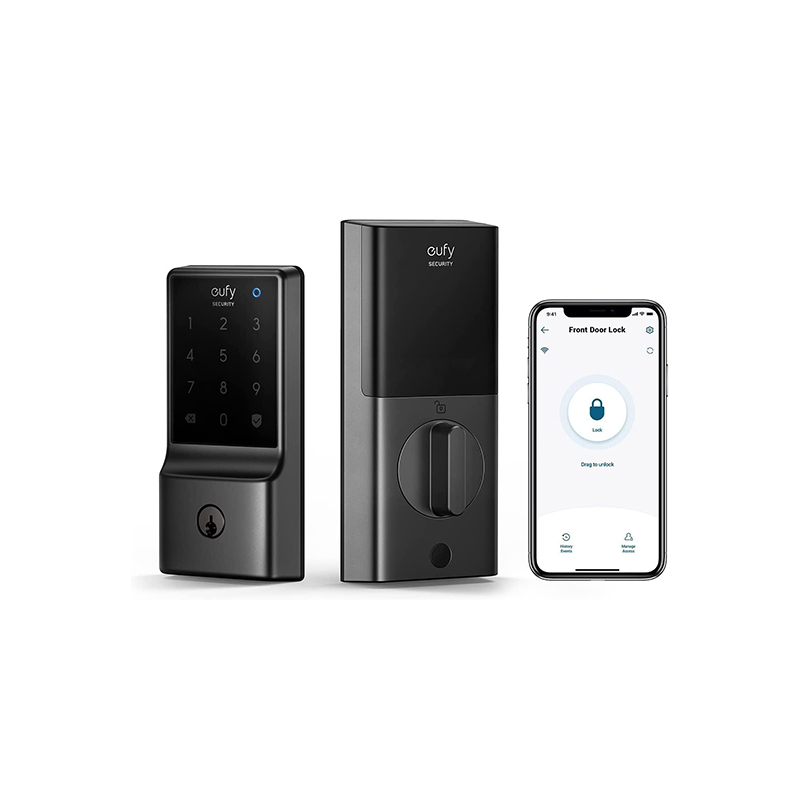 • 5 formas de desbloquear: abre la cerradura de la puerta principal a través de la aplicación eufy Security usando el teclado o la llave física, de Apple Watch, o usa tu voz con Alexa/Google Voice Assistant.