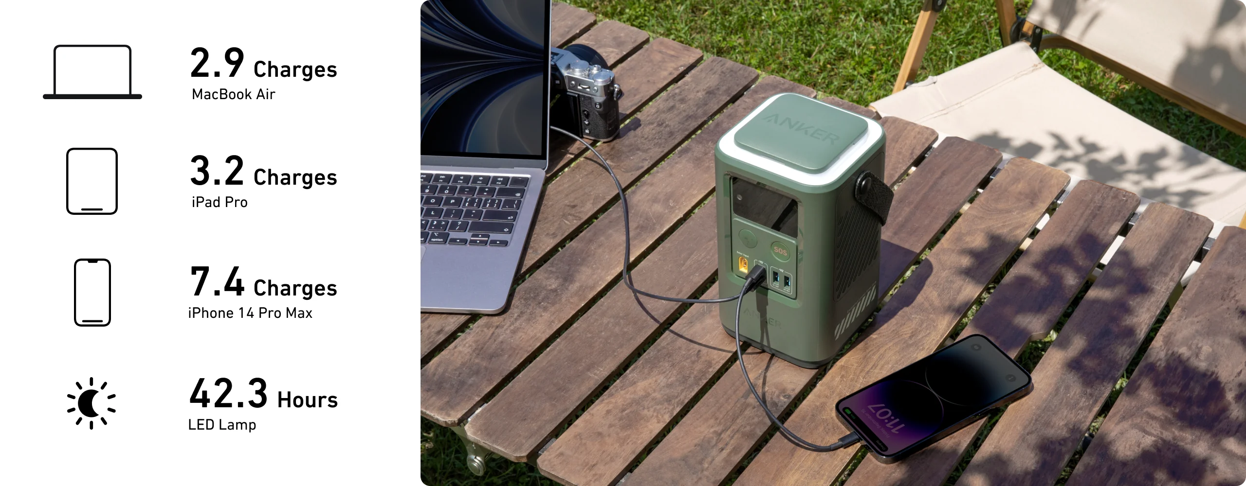 • Conectividad ininterrumpida: una robusta batería de banco de energía Anker de 60,000 mAh garantiza que tu iPhone 14 permanezca cargado más de 10 veces, o mantenga una lámpara LED de 3 W encendida durante 42.3 horas durante salidas prolongadas o apagones, por lo que no tienes que preocuparte por perder energía.