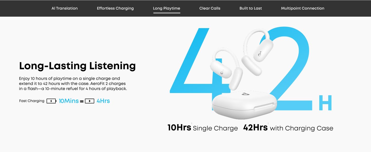 • Manténgase atento, manténgase cómodo: los auriculares AeroFit 2 ofrecen comodidad durante todo el día con materiales suaves y un diseño no invasivo de doble curva, lo que lo mantiene en sintonía con el mundo mientras disfruta de la música.