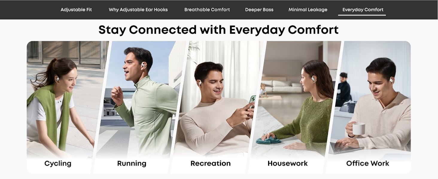 • Un ajuste perfecto para cada oreja: los innovadores ganchos ajustables de 4 niveles de Soundcore garantizan un ajuste cómodo adaptado a más del 99% de las formas y tamaños de las orejas.