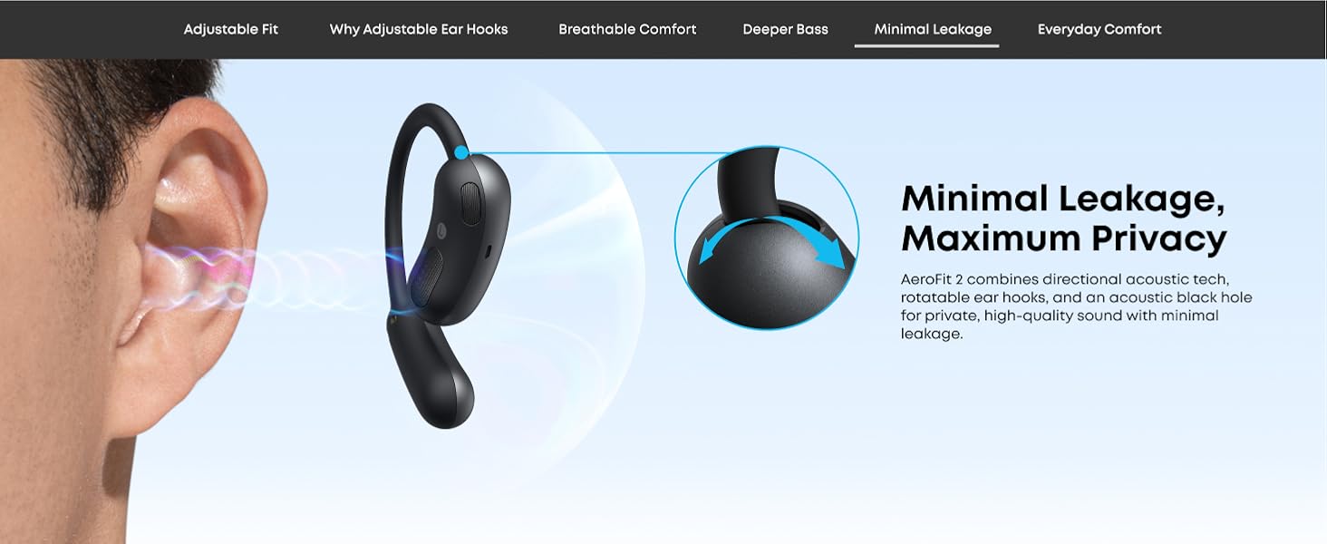 • Manténgase atento, manténgase cómodo: los auriculares AeroFit 2 ofrecen comodidad durante todo el día con materiales suaves y un diseño no invasivo de doble curva, lo que lo mantiene en sintonía con el mundo mientras disfruta de la música.