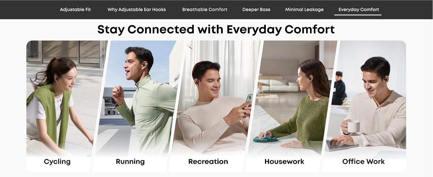 • Un ajuste perfecto para cada oreja: los innovadores ganchos ajustables de 4 niveles de Soundcore garantizan un ajuste cómodo adaptado a más del 99% de las formas y tamaños de las orejas.