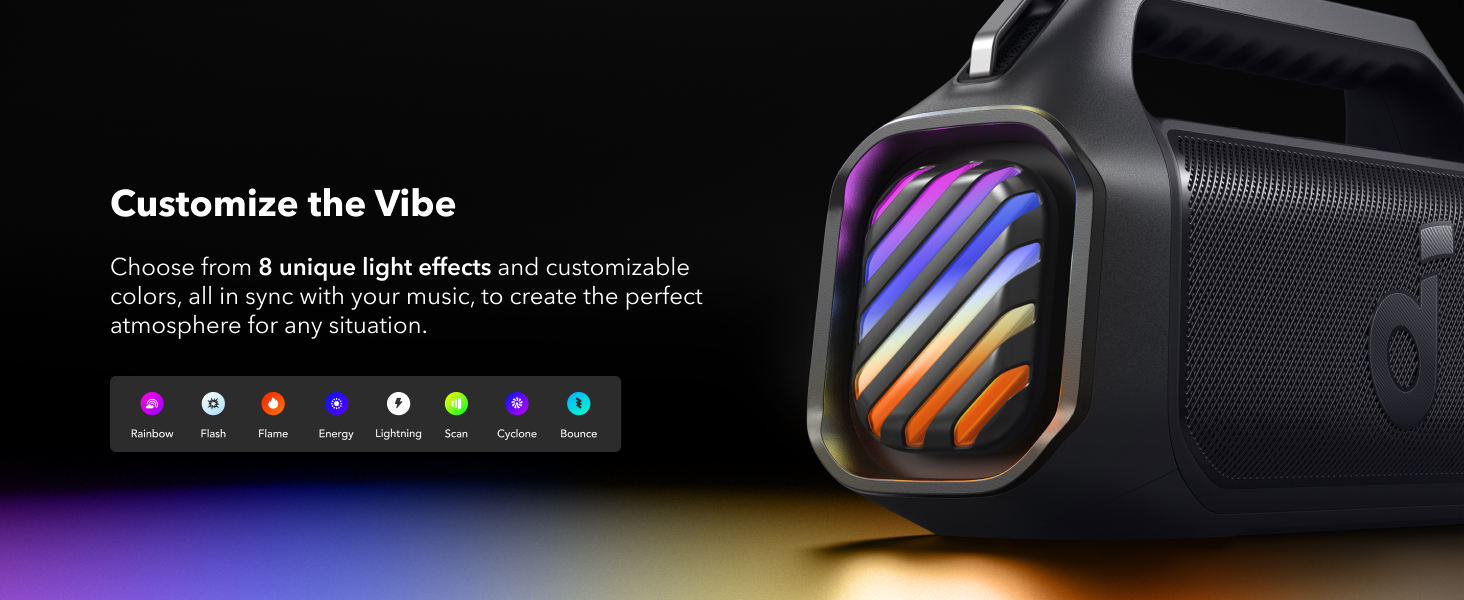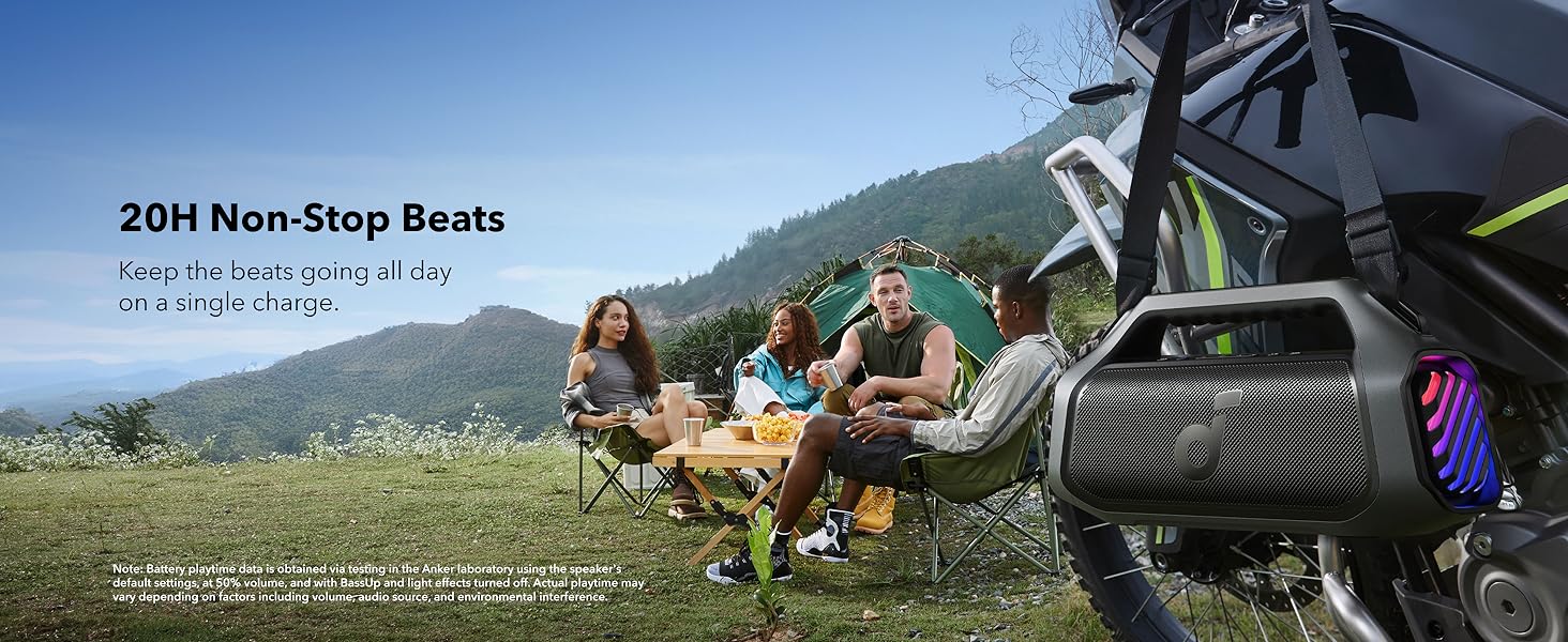 • Carga rápida de 30 W y banco de energía incorporado: Empareja con un cargador de 30 W para cargar completamente el altavoz exterior Boom 2 Plus en solo 3 horas y mantener los ritmos reproduciendo durante 20 horas. Y con el banco de energía integrado, puedes darle a tu teléfono y otros elementos esenciales una carga de 10 W dondequiera que estés. (El tiempo de reproducción puede variar según el nivel de volumen y el contenido de reproducción.