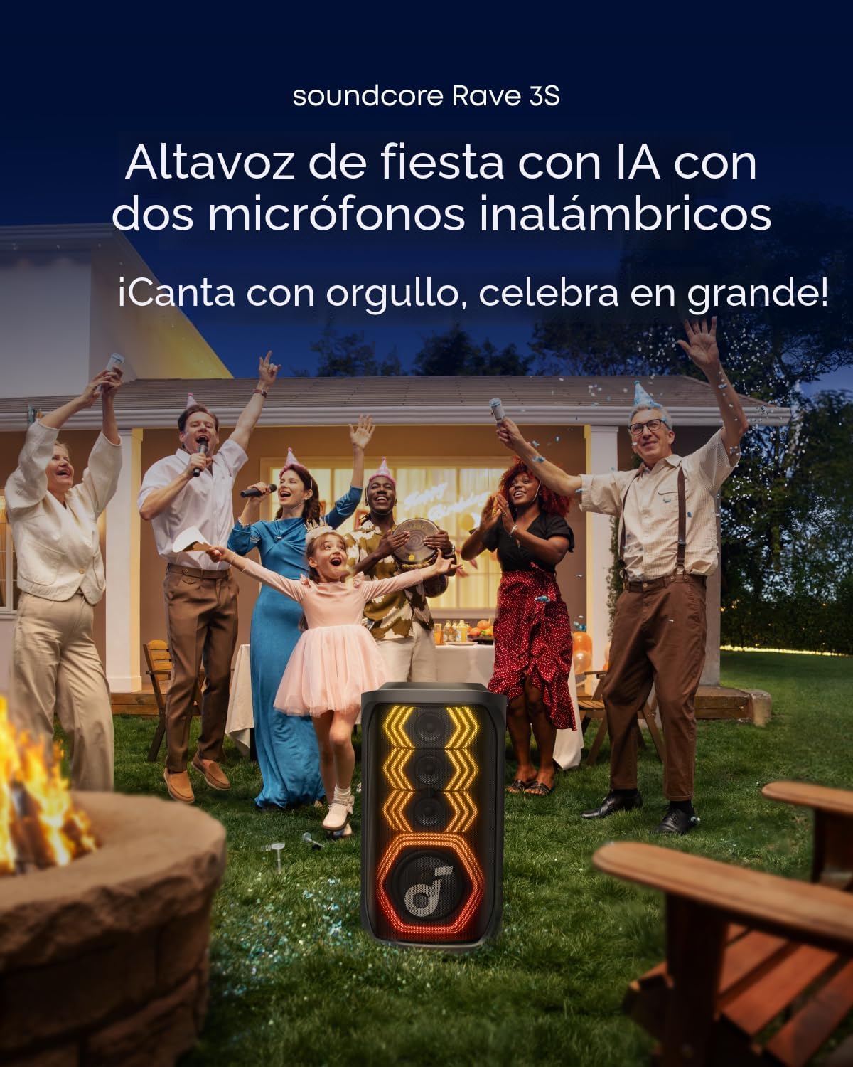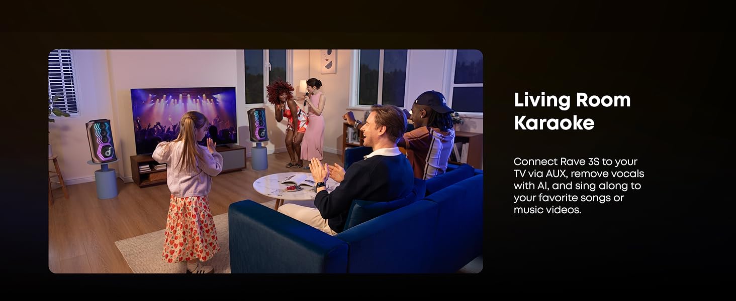 - Altavoz de fiesta impulsado por AI: Siente un sonido potente que llena cada esquina, mientras que las luces dinámicas dan vida a la pista de baile. Con micrófonos duales profesionales y eliminación de voz AI, cantar tus canciones favoritas nunca ha sido tan fácil.