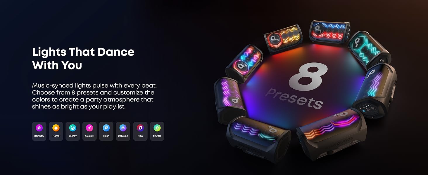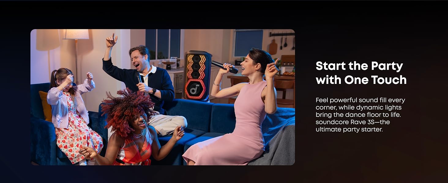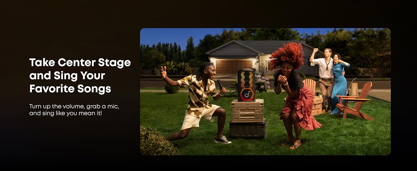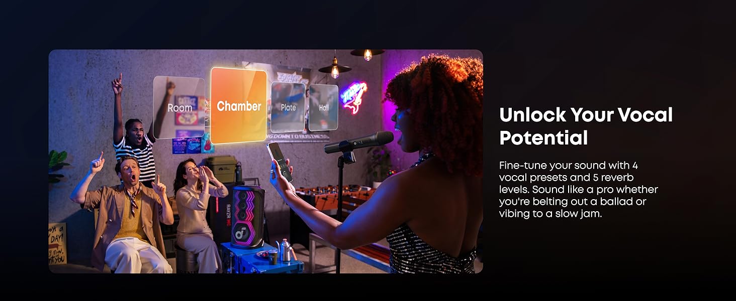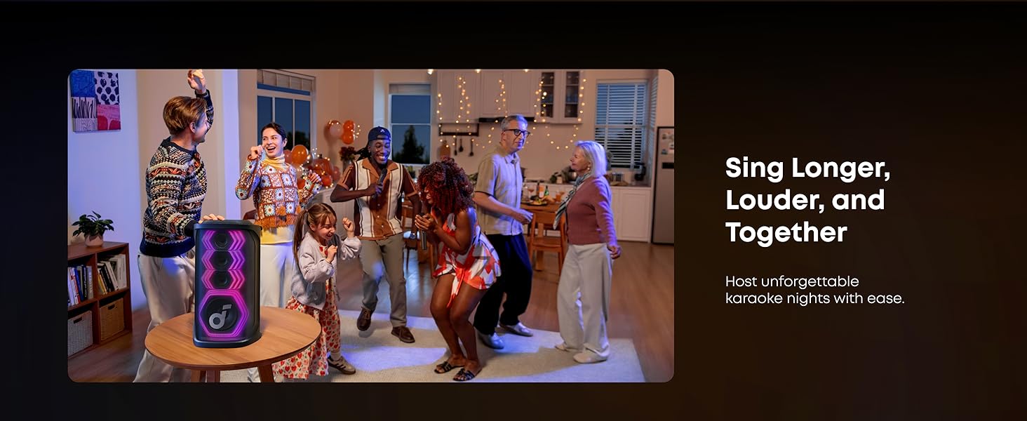 - Personalización de la aplicación: la aplicación Soundcore te da control total sobre tu altavoz de fiesta. Ajusta fácilmente la configuración de EQ, iluminación, efectos vocales y reverberación.