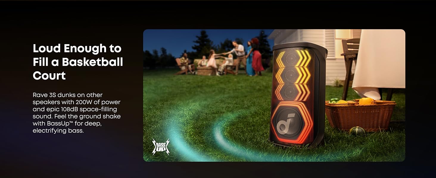 - Sonido potente de 200W: Disfruta de un sonido potente de 200W y graves profundos a través de un woofer de 6.5″ y tres controladores de rango completo de 2.5″. Este altavoz para fiestas es lo suficientemente fuerte como para llenar una cancha de baloncesto, proporcionando el ambiente de fiesta definitivo para cualquier ocasión.