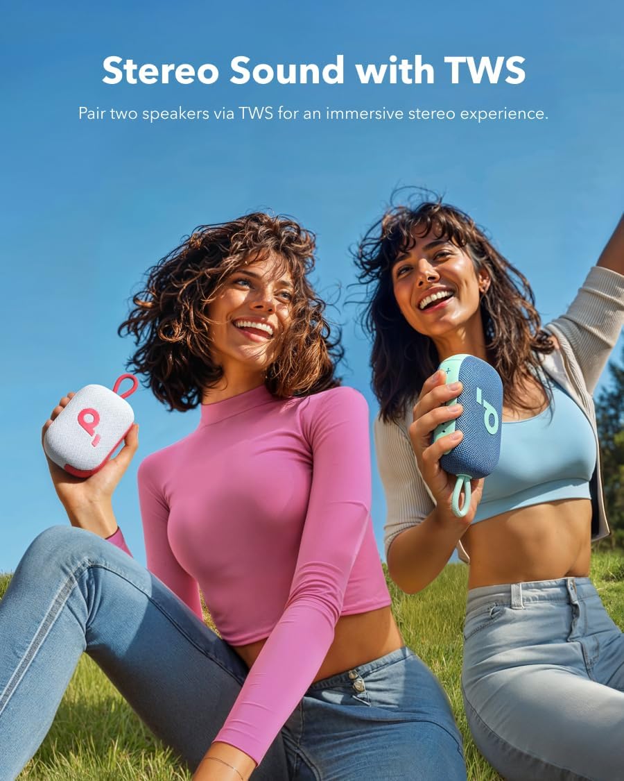 • Listo para exteriores y portátil: el diseño ligero y la correa incluida hacen que este mini altavoz sea lo suficientemente portátil como para llevarlo a cualquier lugar, ya sea que estés duchándote, camping, senderismo o ciclismo.